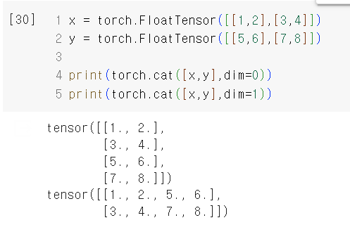 cat으로 사용되는 이 기능은 두개의 Matrix를 합친다고 생각하면 됩니다.