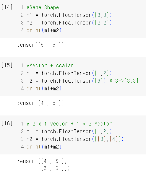 이때 이 기능을 사용하게 되면 자동으로 행렬의 크기를 맞추어서 실행되는 것을 확인할 수 있습니다.