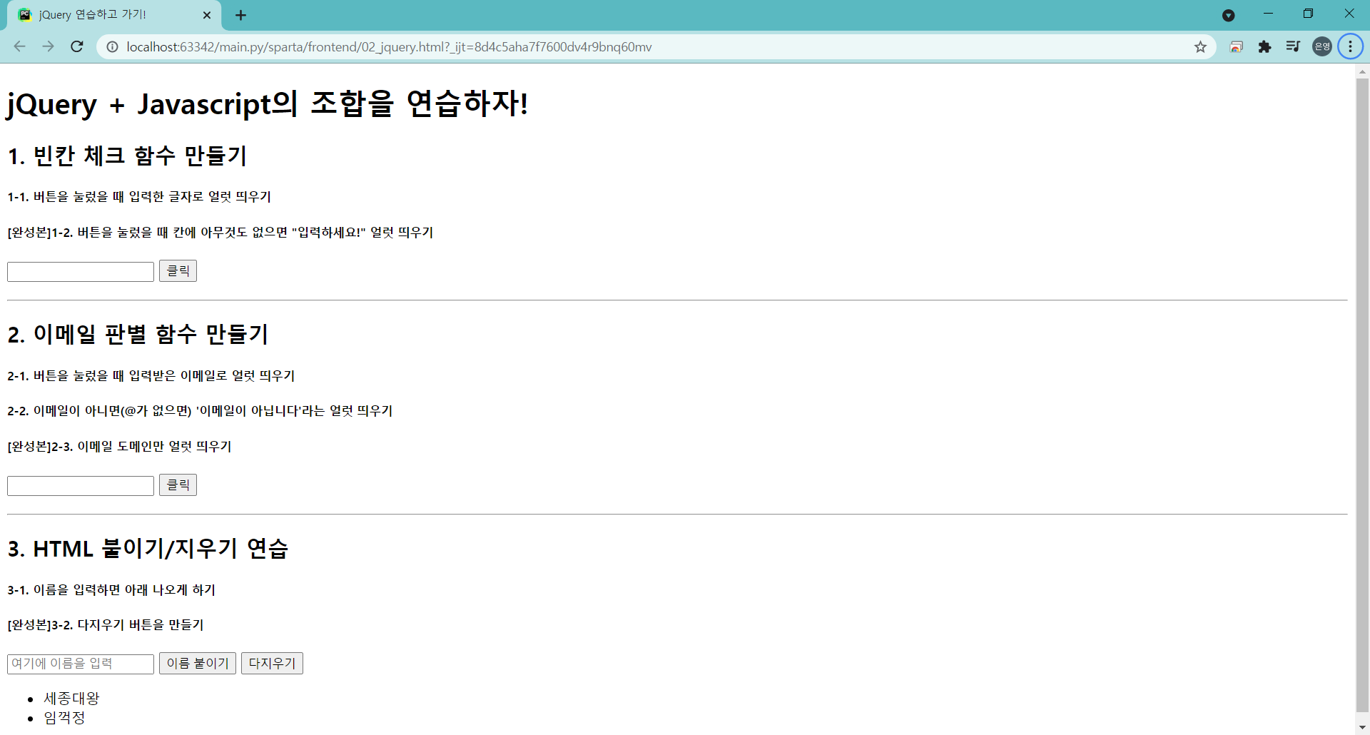 <h1>jQuery + Javascript의 조합을 연습하자!</h1>