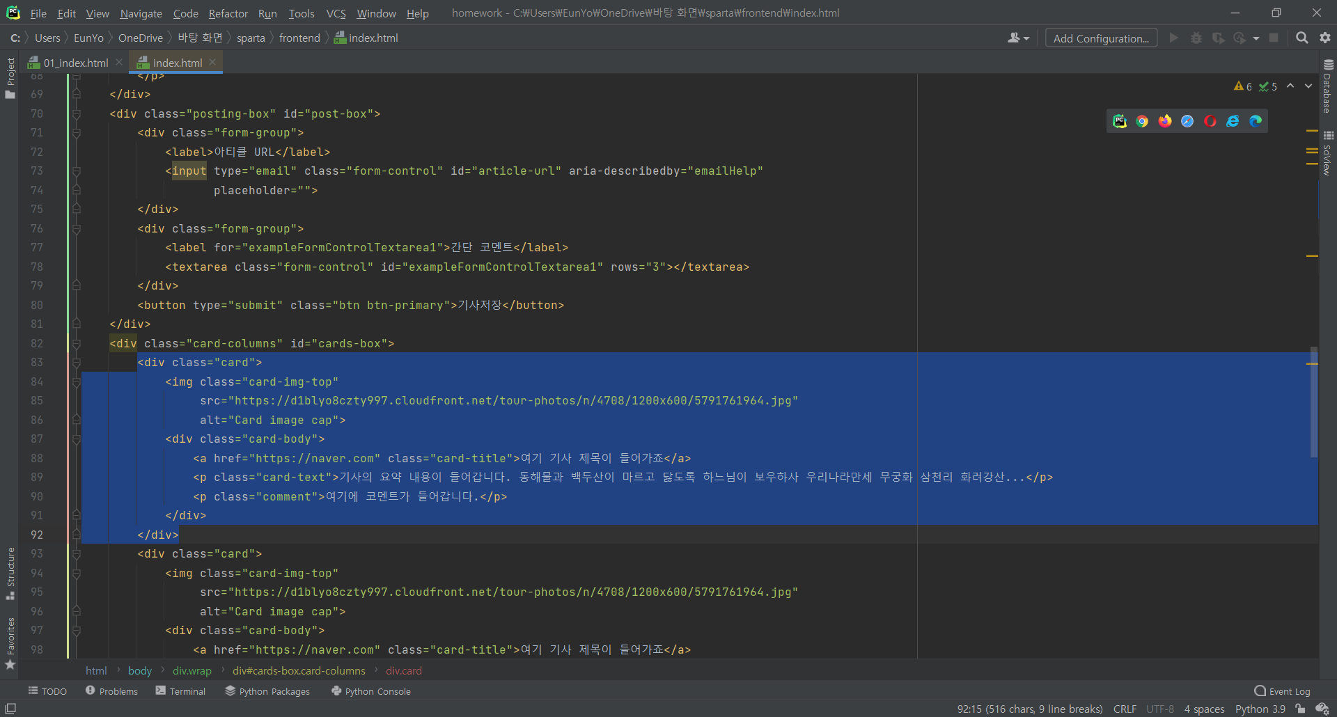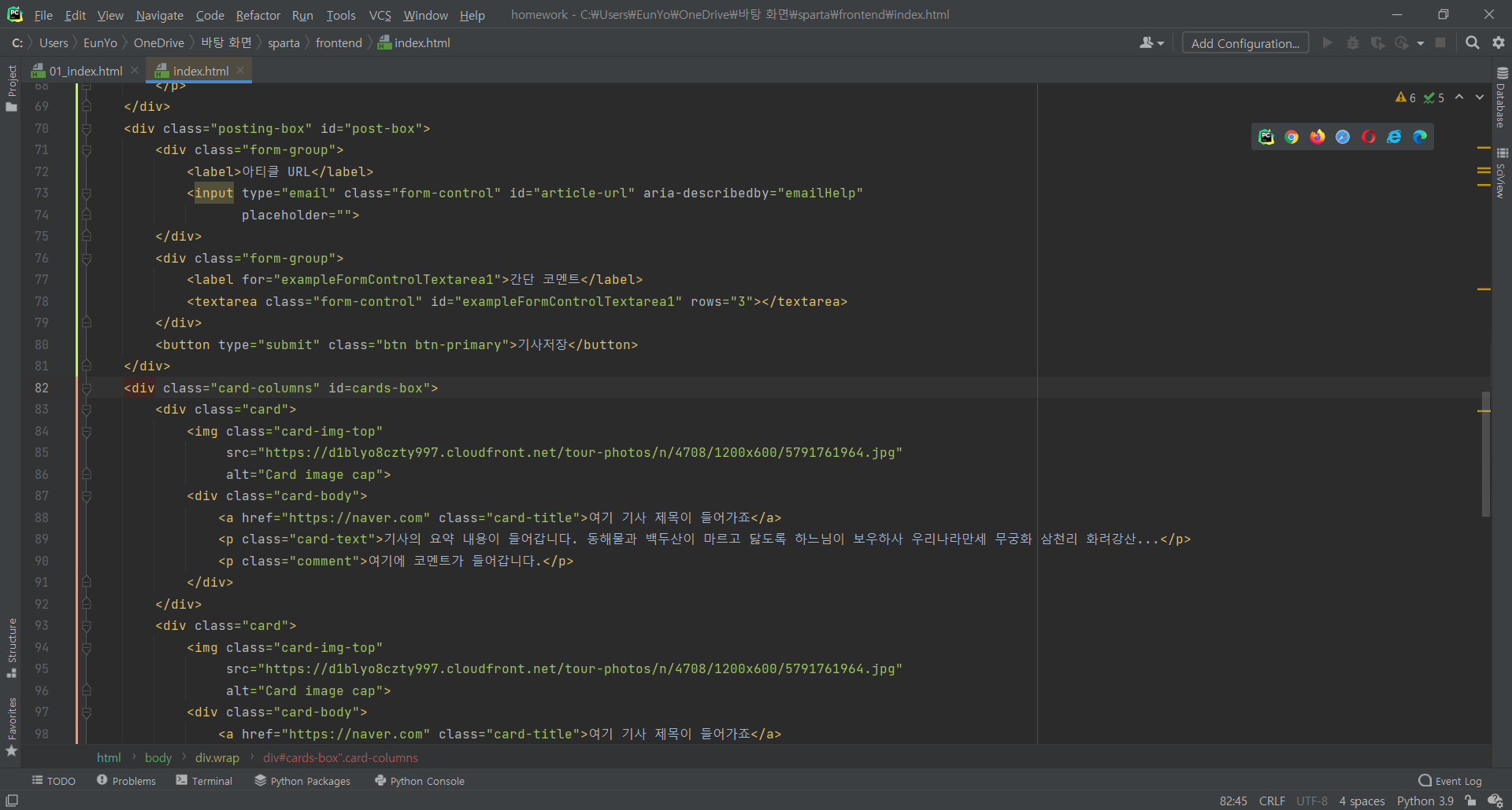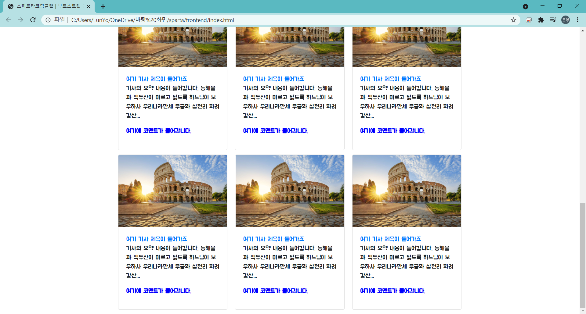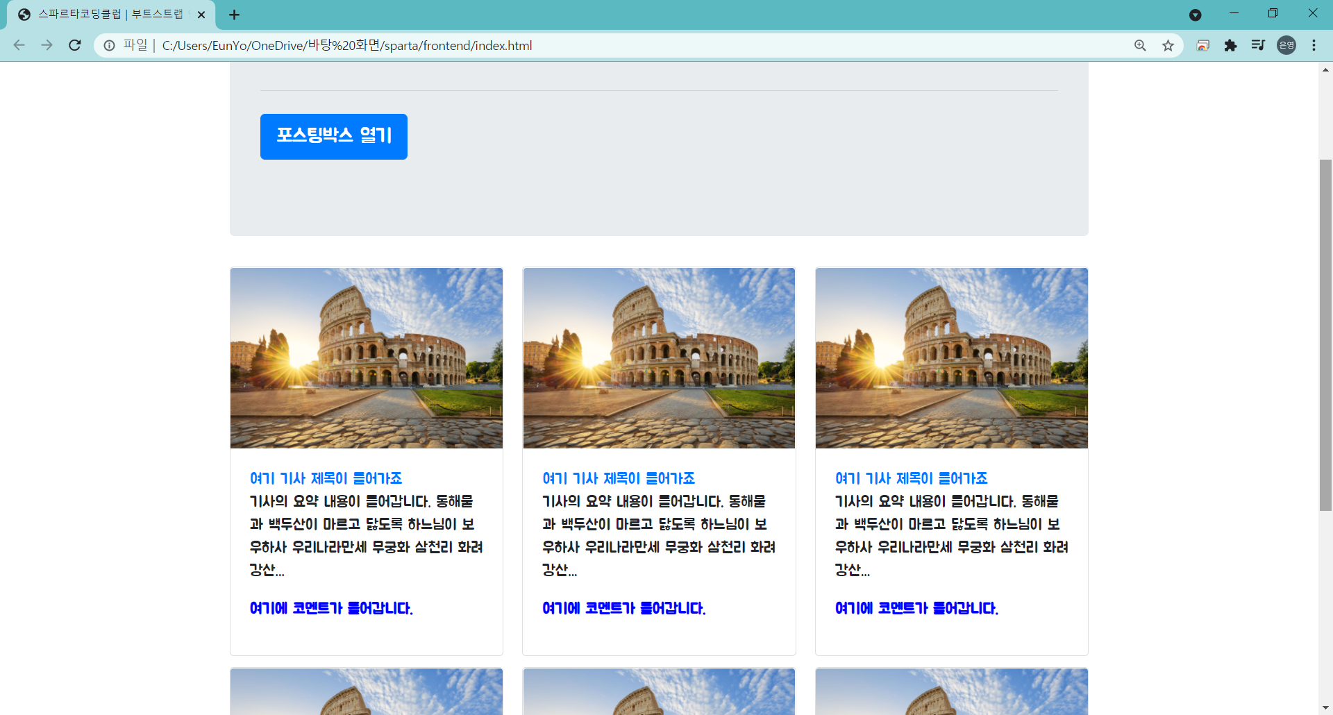 cards-box들이 밑으로 계속 추가되는 것을 볼 수 있다.