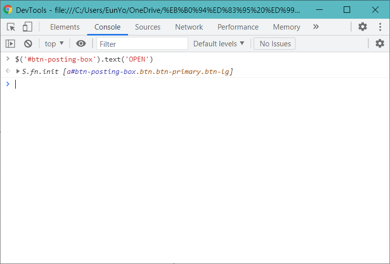 $('#btn-posting-box').text('포스팅박스 닫기');