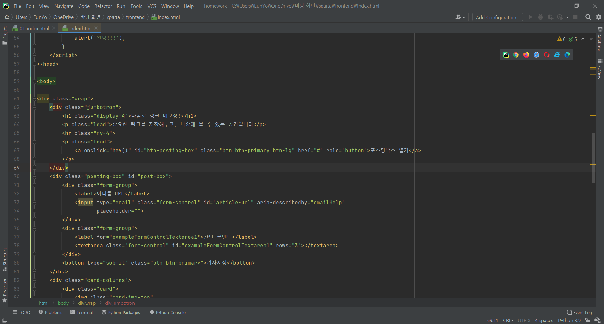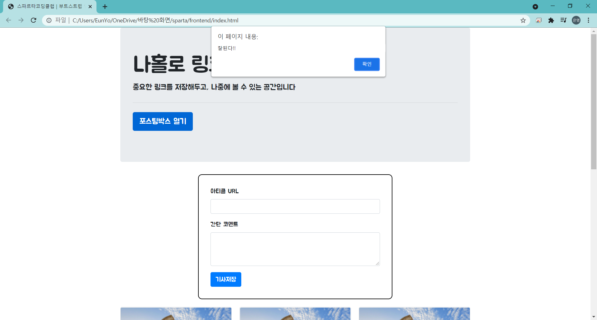 2) 버튼을 눌렀을 때 칸에 아무것도 없으면 "입력하세요!" 얼럿 띄우기