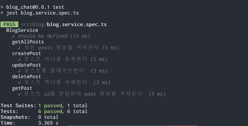 최근에 나는 Nest.js를 사용하여 간단한 서비스를 개발하는 중이다 이 프로젝트에서 중요한 것 중 하나는 테스트 주도 개발(TDD)을 통해 안정적이고 신뢰성 있는 코드를 작성하는 것인데. 이 블로그 포스트에서는 Nest.js의 BlogService 클래스에 대한 TDD 개발 과정을 공유하고자 한다.