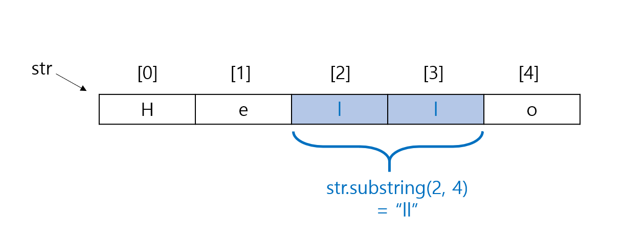 str.substring(2);"Hello" 문자열의 index 2('l')부터 마지막까지 문자열을 잘라서 리턴한다.