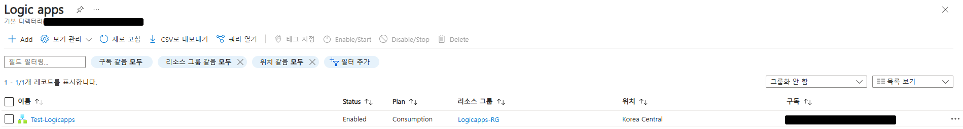 Logic App을 하나 생성합니다.