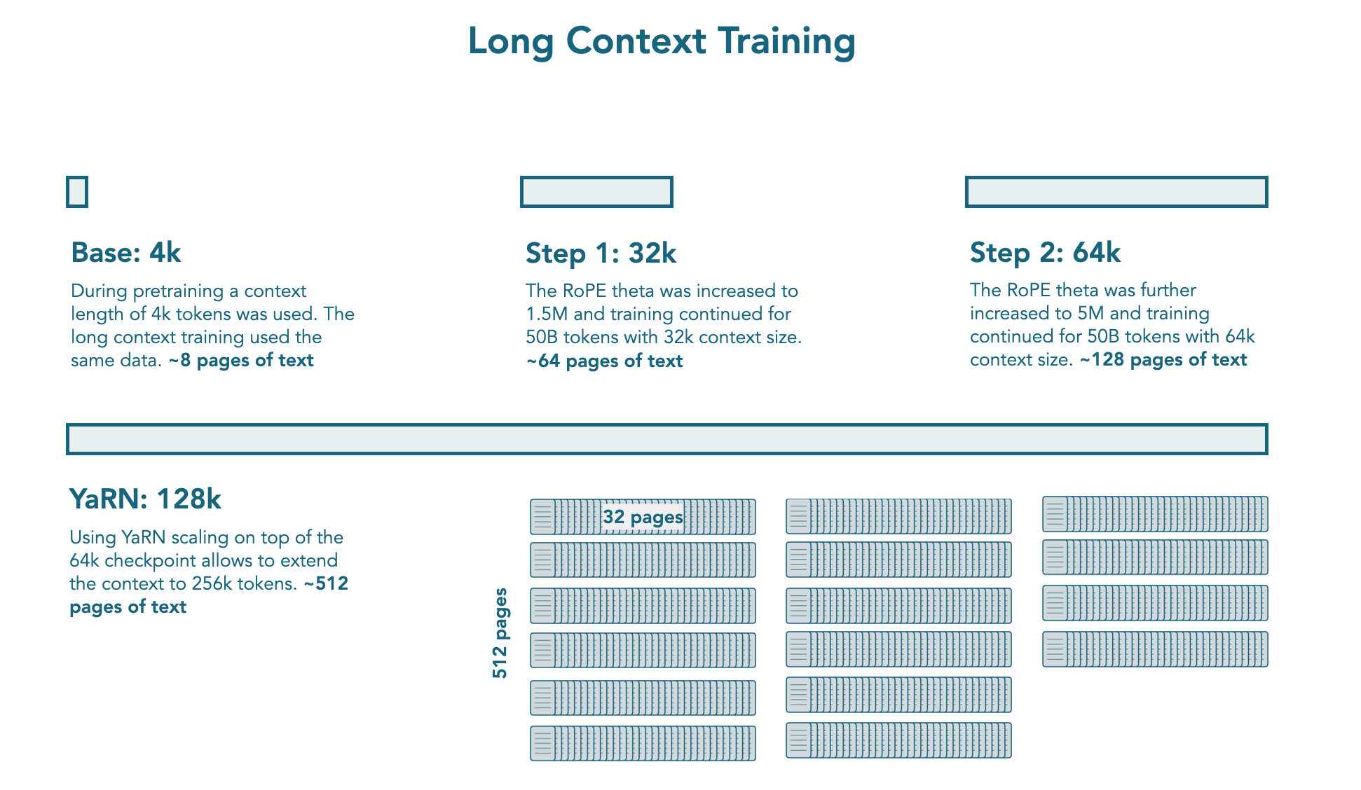 50B 토큰씩 두 단계에 걸쳐 컨텍스트 윈도우를 순차적으로 확장했습니다.