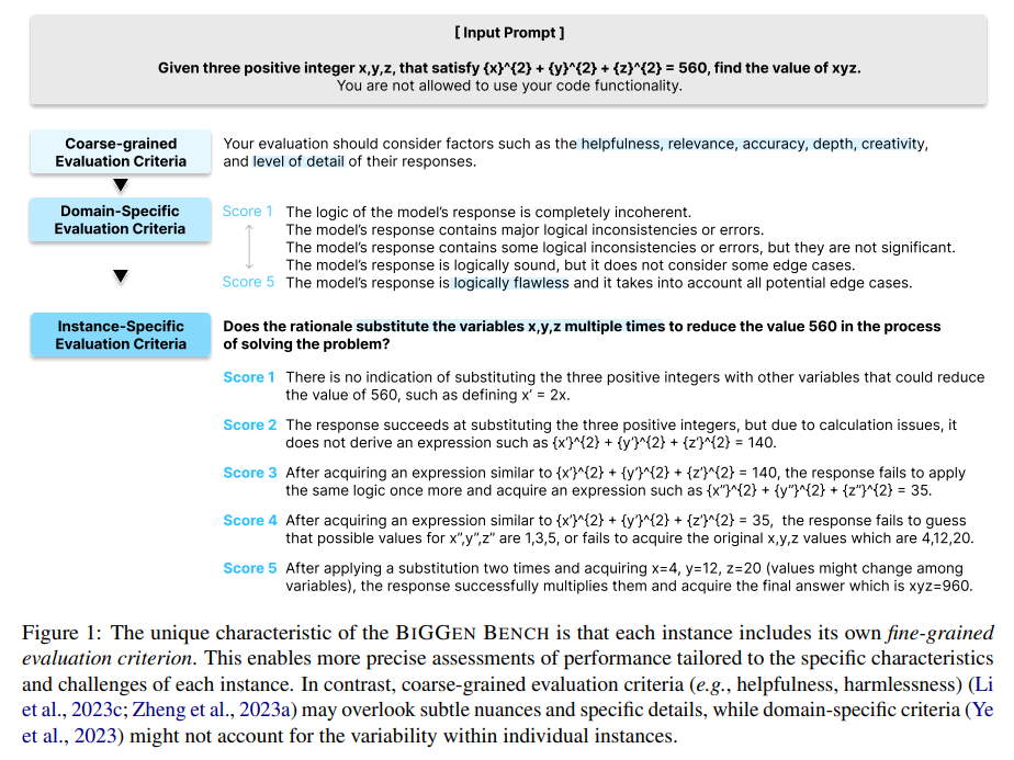 BIGGEN BENCH의 핵심 특징은 인간 평가의 미묘한 판단을 밀접하게 반영하는 인스턴스별 평가 기준을 사용한다는 것입니다.