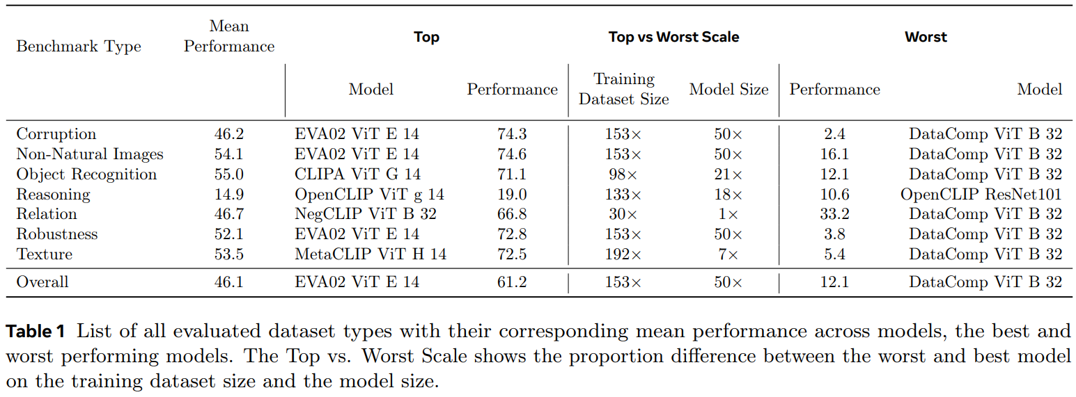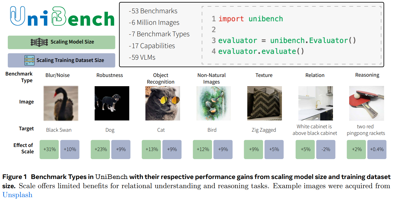 UniBench의 유용성을 입증하기 위해 공개된 60개의 VLM을 평가했습니다.