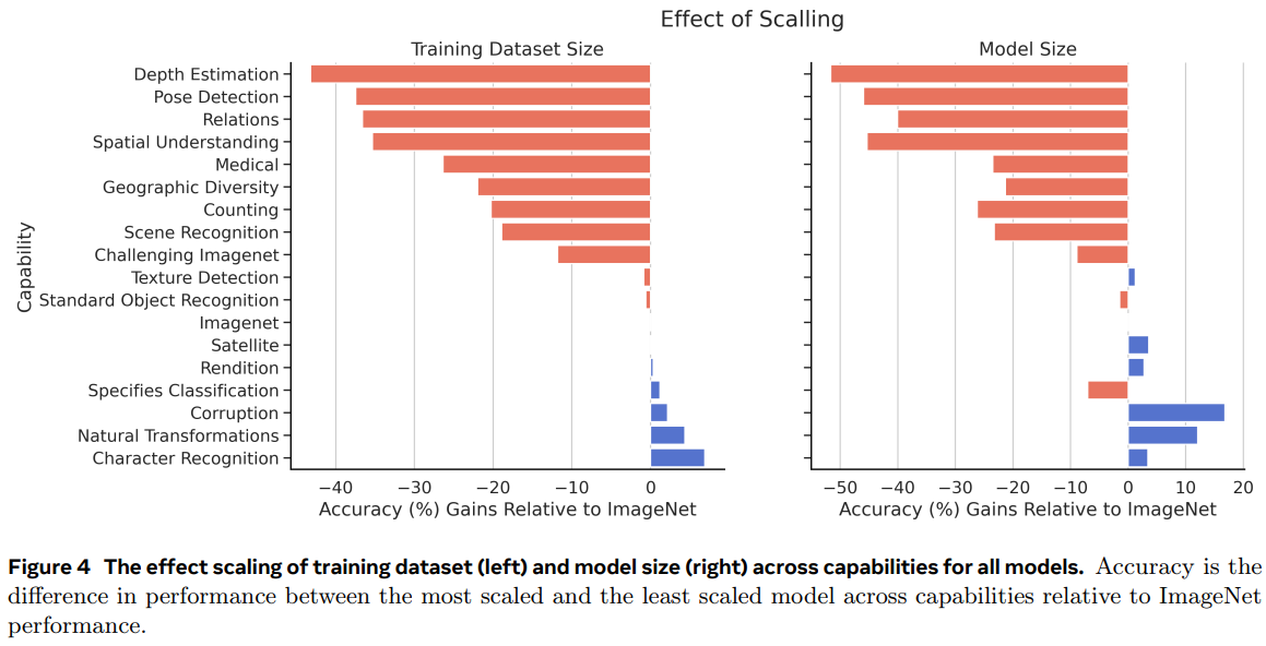 데이터 크기의 확장뿐만 아니라 모델의 크기 확장 역시 관계, 추론 성능의 이점을 제공하지 않습니다.