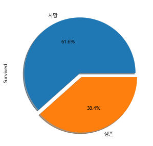 사망 비율은 61.6%, 생존 비율은 38.4%로 사망한 탑승객의 수가 더 많다.