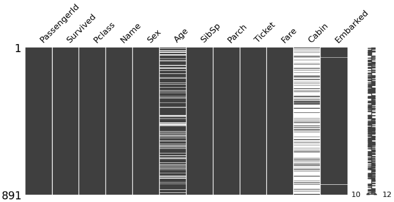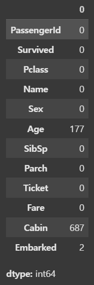 train data에는 Age, Cabin, Embarked 컬럼에 결측치가 존재