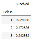 train[['Pclass', 'Survived']].groupby('Pclass').mean()