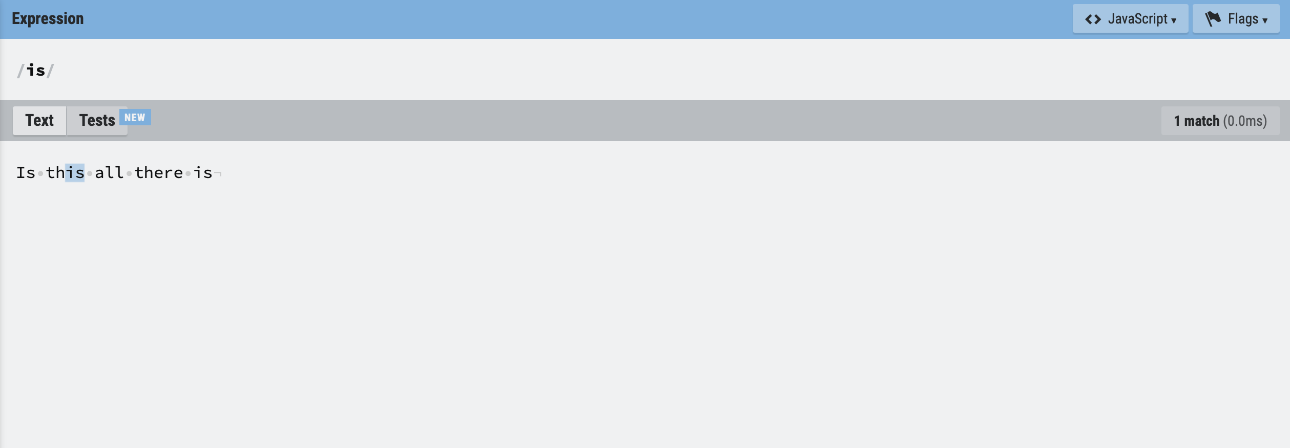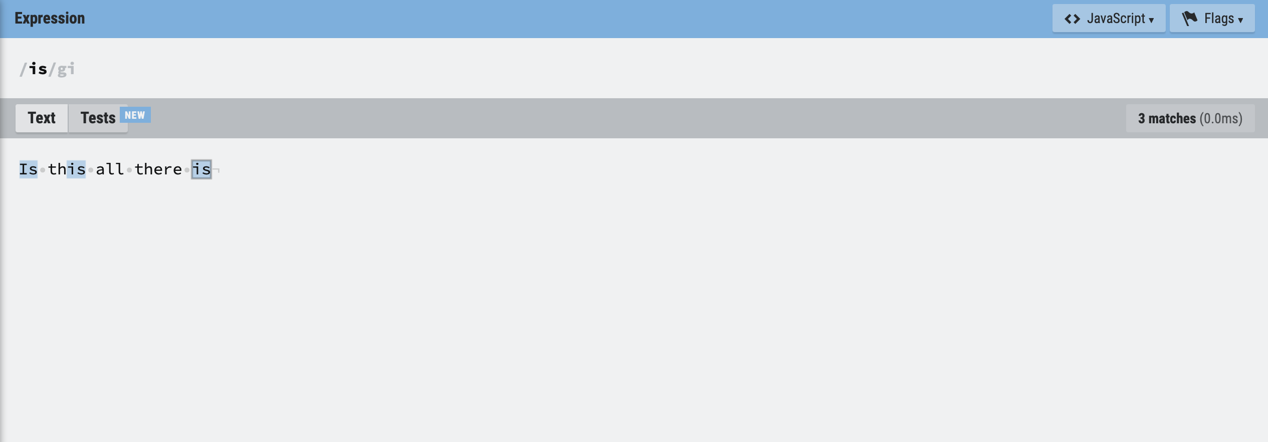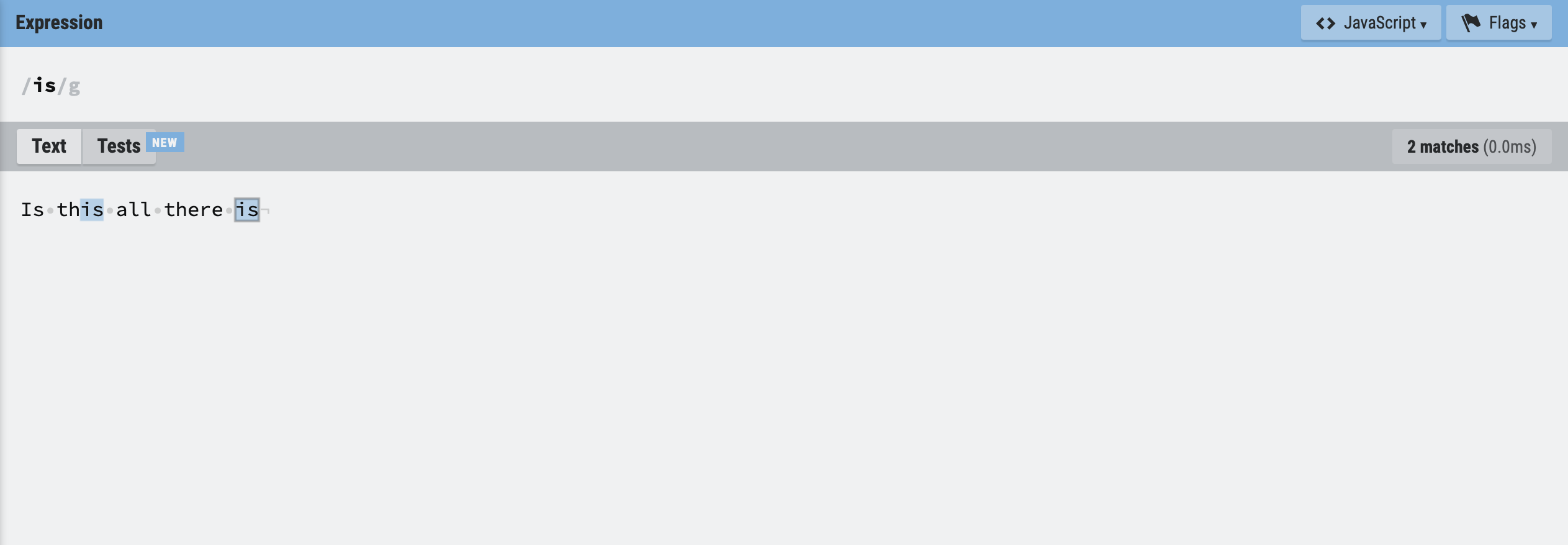 패턴과 함께 정규 표현식을 구성하는 플래그는 정규 표현식의 검색 방식을 설정하기 위해 사용한다. 플래그는 옵션이므로 선택적으로 사용할 수 있으며, 순서와 상관없이 하나 이상의 플래그를 동시에 설정할 수도 있다.