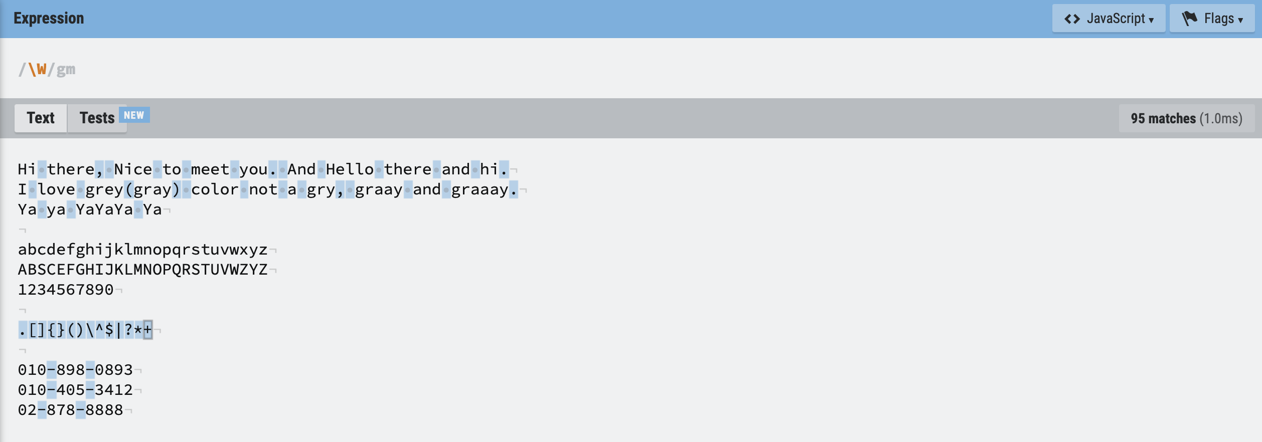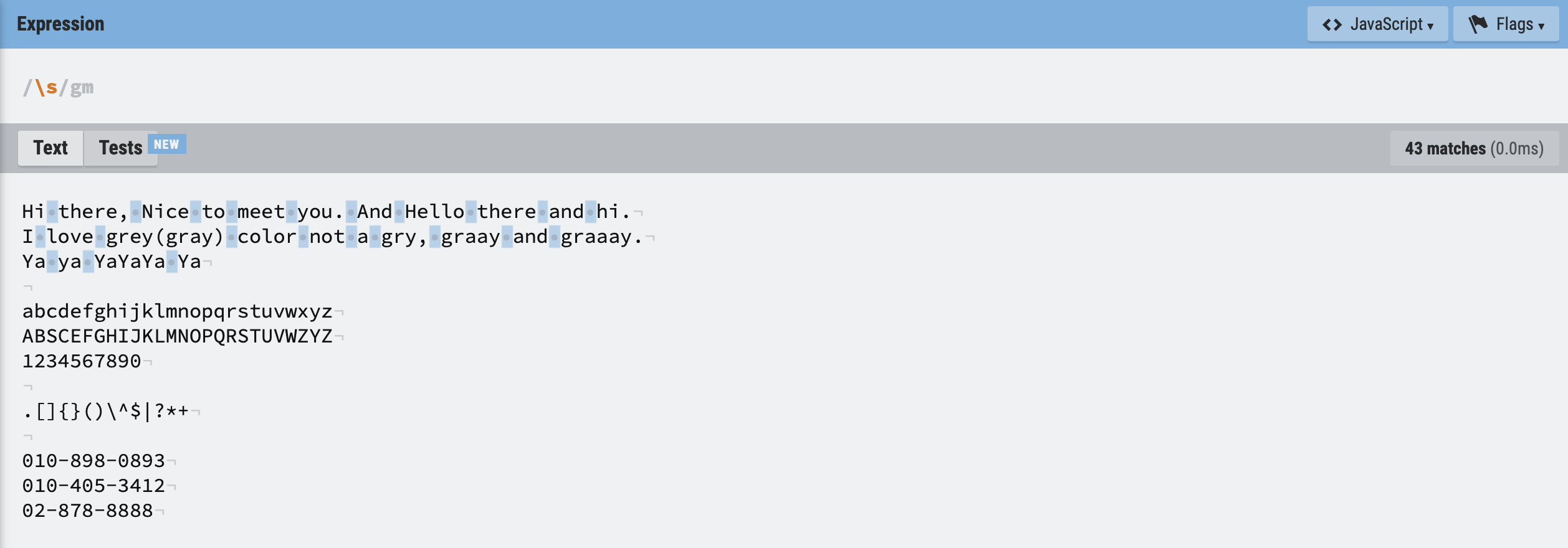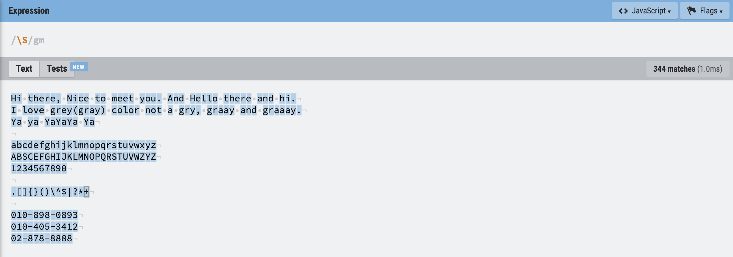 \S : space 공백 아님 (줄바꿈 제외)