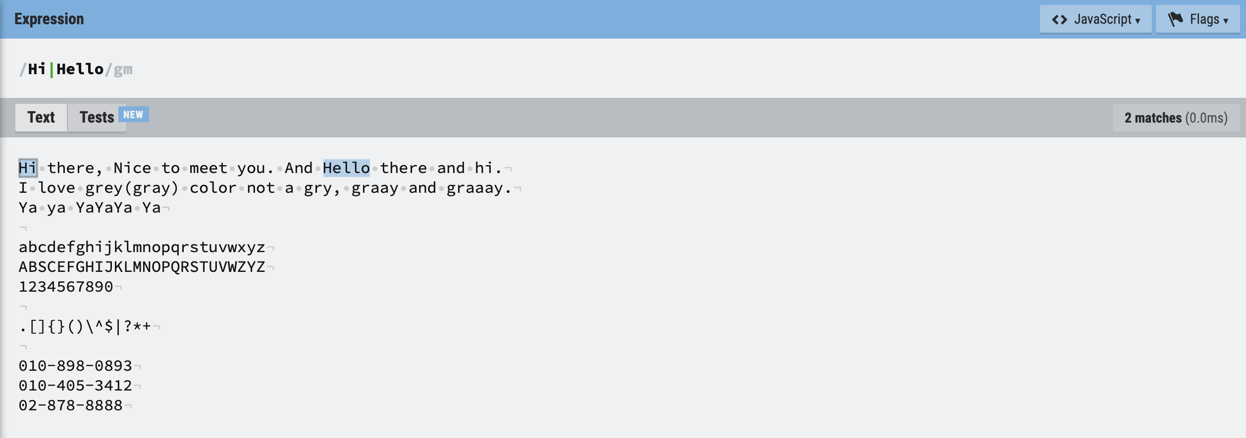정규 표현식 리터럴은 위와 같이 패턴(regexp)과 플래그(i)로 구성된다.