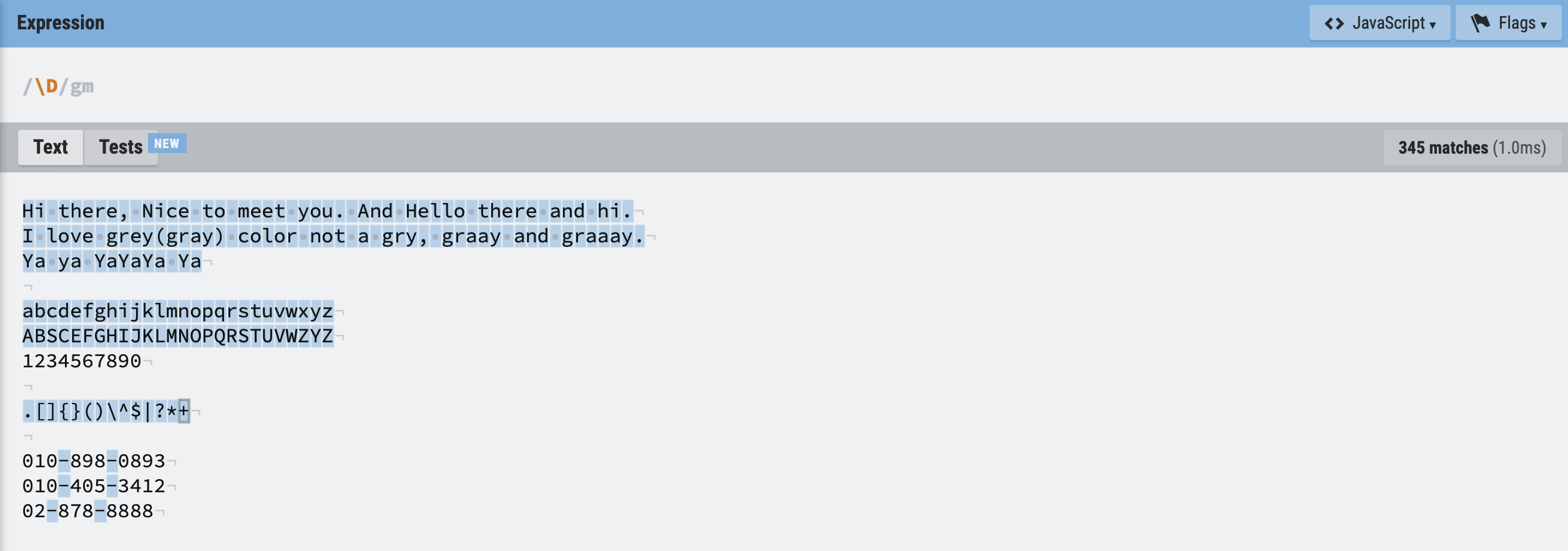 | \D | digit 숫자 아님 |