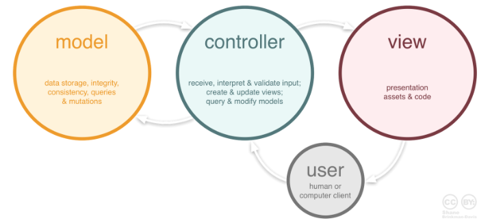 - Controller를 조작하면 Controller는 Model을 통해 데이터를 가져와 View를 제어하여 사용자에게 전달하게 됩니다.