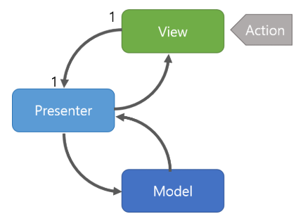 - View, Model, Presenter의 역할을 엄격히 분리