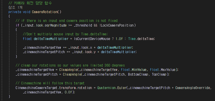 - Cinemachine 카메라가 따라다니는 타겟의 회전을 업데이트합니다