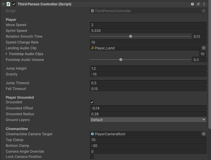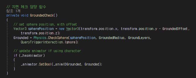 - Animator를 사용중이라면 _animIDGrounded 를 통해 애니메이터로 전달합니다.