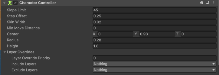 - Include Layers : 캐릭터 콜라이더가 충돌을 포함해야 할 레이어를 선택합니다.