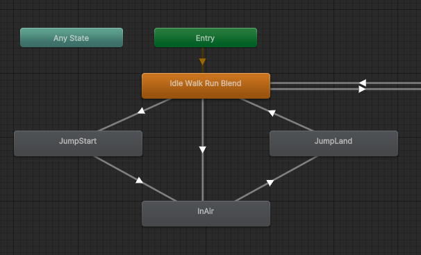 - 점프 속도 계산으로는 Mathf.Sqrt(JumpHeight -2f Gravity)를 사용하여 점프 초기 속도를 계산하고 애니메이션 상태를 활성화 합니다.