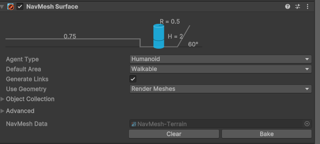 - NavMeshSurface : 런타임 중 NavMesh를 동적으로 업데이트할 수 있는 컴포넌트