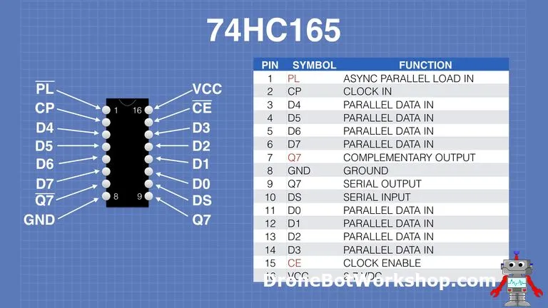 직렬 출력: 입력된 병렬 데이터를 한 비트씩 직렬로 출력할 수 있습니다. 데이터는 Q7과 Q7’ 핀을 통해 직렬로 출력
