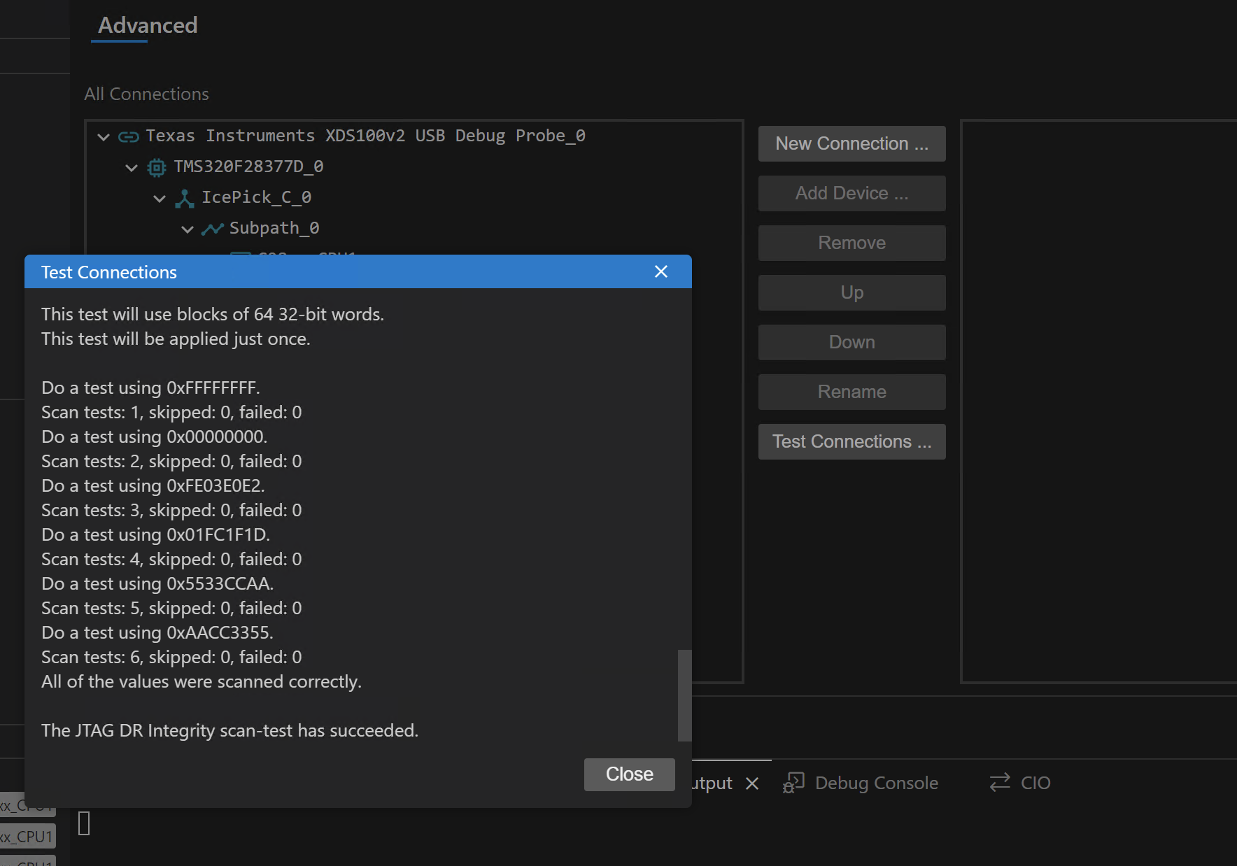 그럼 추가된 configuration을 선택하고 advanced 메뉴에서 test connections를 할 수 있다.