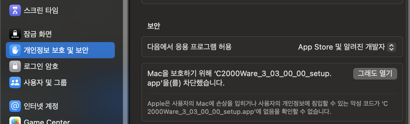 그래도 열기를 선택한다.