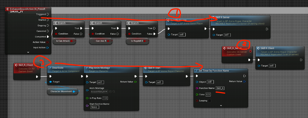 서버 통신을 위해 '서버에서 실행', '멀티캐스트' 설정은 기본이다. 이 동작은 어느 이벤트가 발생하던 멀티플레이 시에는 반드시 필요하다는 것을 기억해두자.