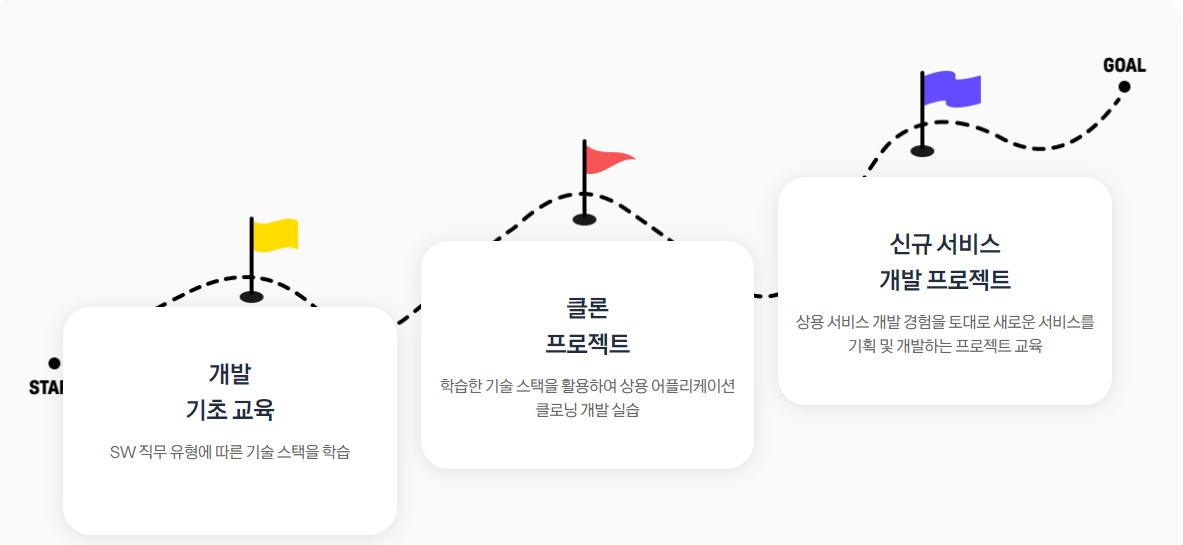 가을 학기에는 클론 프로젝트를 경험한 후 새로운 서비스를 기획하고 개발하는 방식으로 12주간 팀 프로젝트를 진행한다. 이 때 프론트엔드+백엔드, 안드로이드+백엔드로 팀을 구성해 서비스 개발을 진행하는 방식으로 이루어진다고 한다. 그렇기에 인원 또한 백엔드 교육생을 프론트엔드와 안드로이드의 두 배 정도 모집한다고 한다.