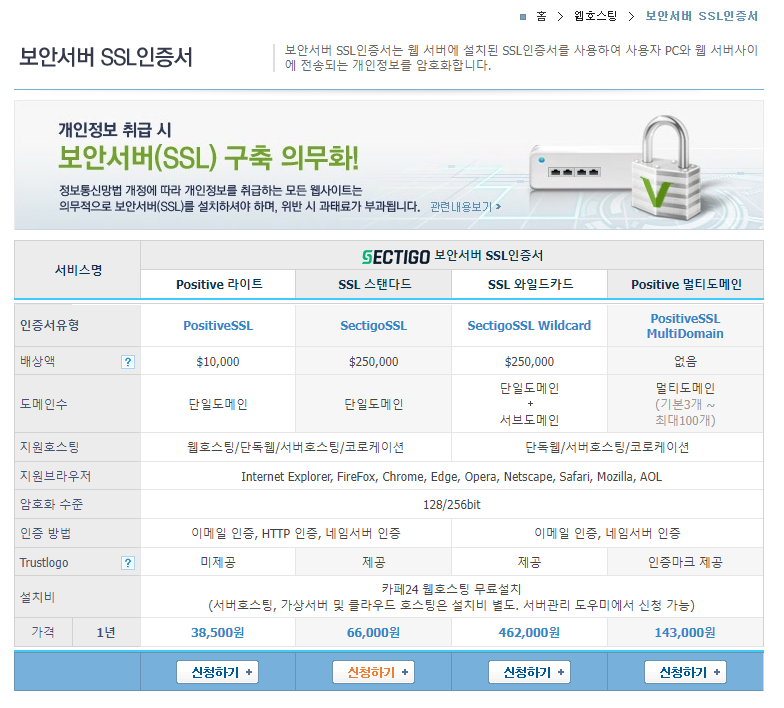 • 여담으로 ssl이던 도메인이던 다른 사이트에서 구입해도 과정과 결과는 비슷하니 금액과 옵션을 자신의 환경에 맞게 설정하면 된다.