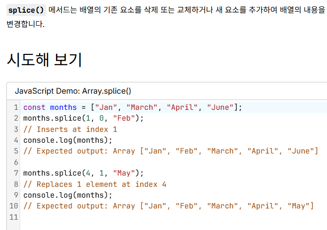 고마워요 MDN 웨건! 당장 splice() 를 시도해 본다!