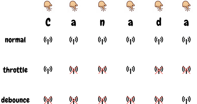 둘이 한 단어가 아니었다. 쓰로틀링을 디바운싱 하는게 아니라 쓰로틀링과 디바운싱이 각각의 기법이구나. 디바운싱과 쓰로틀링에 대해 설명해놓은 참고 블로그를 보았다.