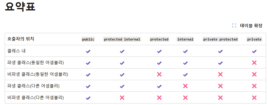 환장하겠네. 참고 블로그를 보면 일반적으로는 4개를 쓰는 것 같다. private, internal, protected, public.