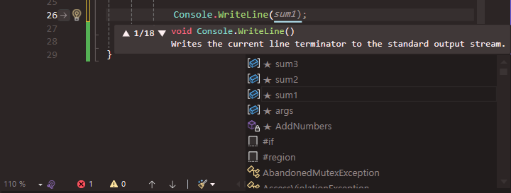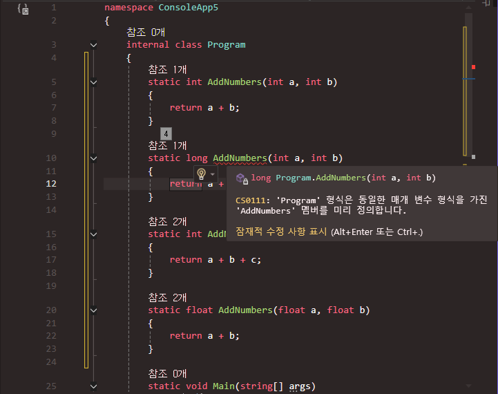 이걸 잘 모르겠으면 늘 쓰던 Console.WriteLine() 을 입력해보면 오버로딩 18개를 볼 수 있다.