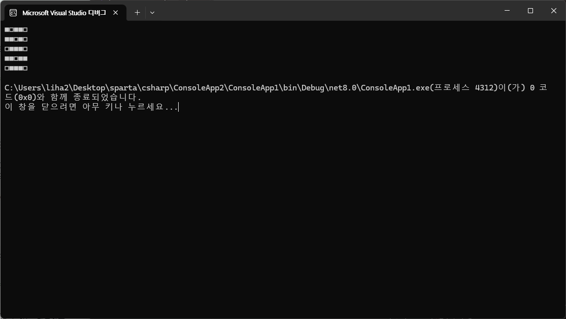 이 틱택토 맵의 경우 5개짜리가 5줄이니 뭘 써도 상관 없었다. map.GetLength(0) 으로 i값의 한계를 고치니 터지지 않고 무사히 돌아갔다.