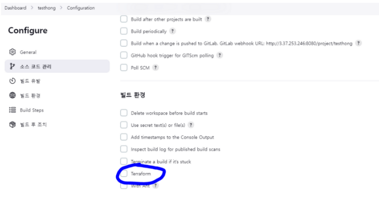 - Job에서 Execute Shell의 Shell 명령을 통해 Terraform 을 실행