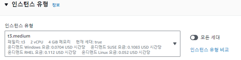 - 사양은 t3.medium으로 한다. Jenkins와 Terraform을 실행해야 하므로, 성능을 넉넉하게 주어야 한다