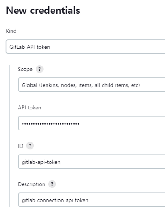 - 다음으로, Jenkins에 GitLab Connection을 생성하기 위한 Credentials를 생성하자