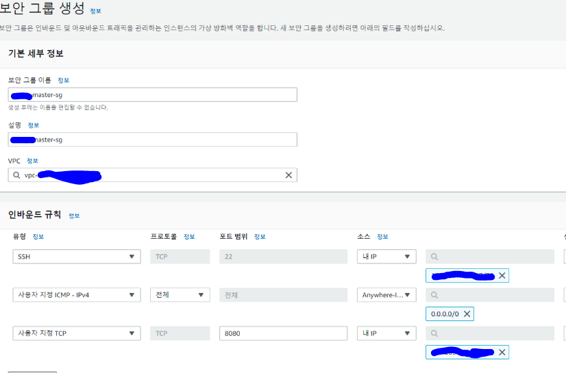- 작업을 위한 SSH 접속을 위한 22번 포트와 Jenkins 접속을 위한 TCP 8080번 포트에 대한 인바운드 트래픽을 허용하자