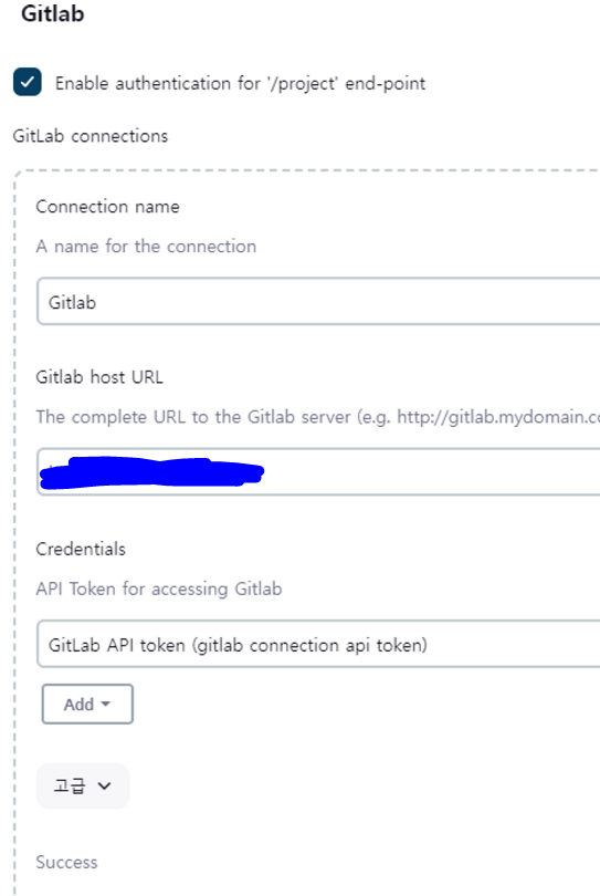 - GitLab Ingress에 설정한 Domain 주소와 위에서 생성한 API token Credential을 지정해주면 된다