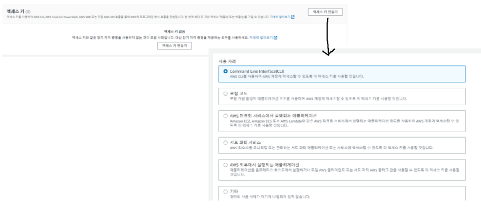 - Terraform을 통해 AWS에 인프라를 구축할 때, AWS Access Key가 필요하다. AWS CLI용 Access Key를 생성하자