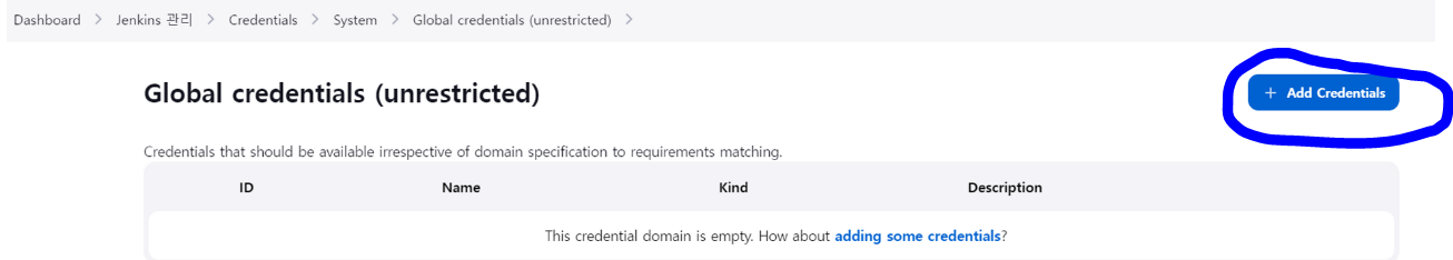 - Gloabl credentials 설정에 들어가서 Credentials를 추가하자