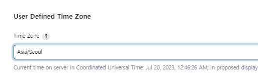 - User Defined Time Zone에 원하는 Time Zone을 선택하면 된다