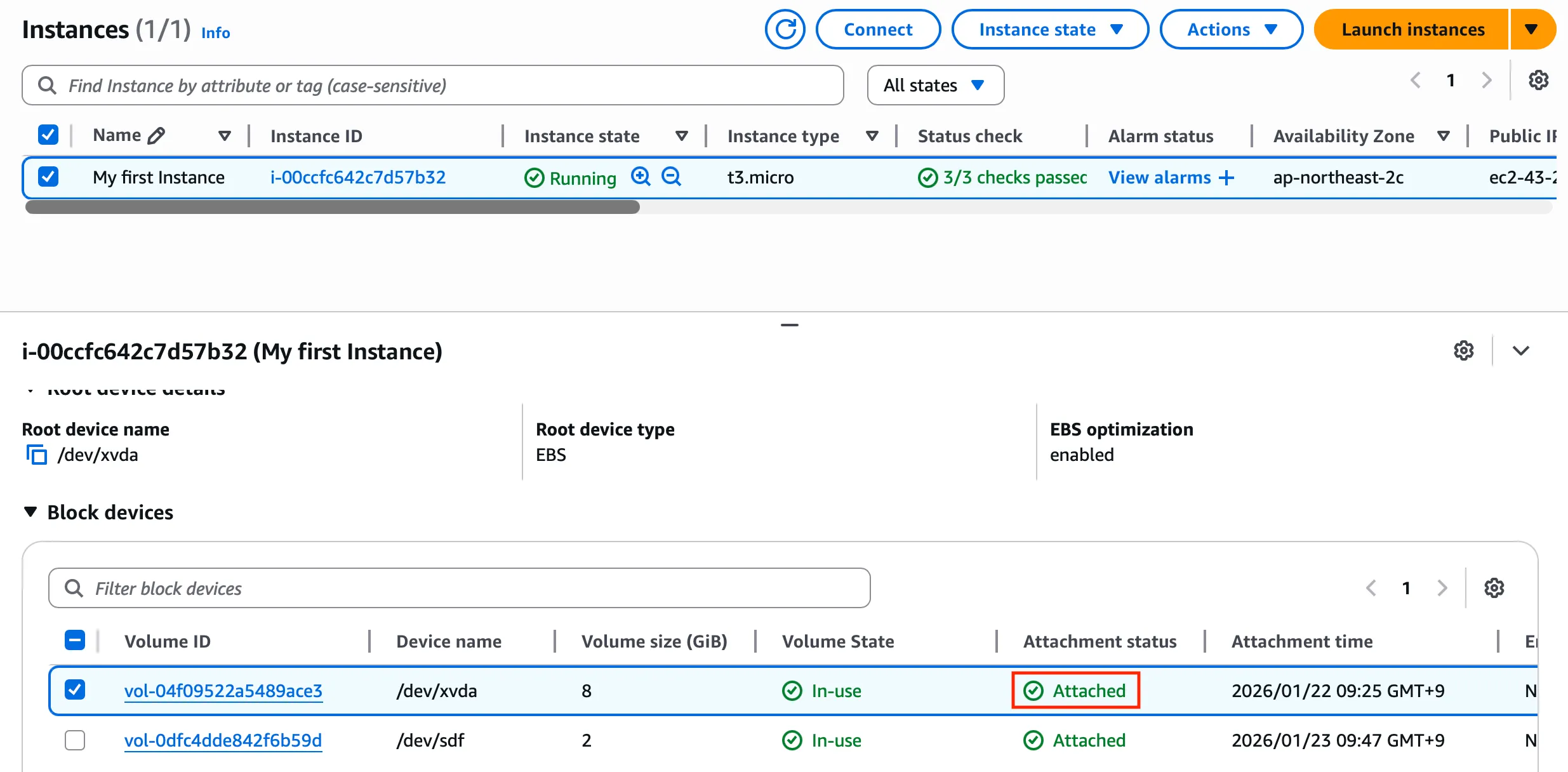- EBS = 그 컴퓨터에 연결된 SSD / HDD