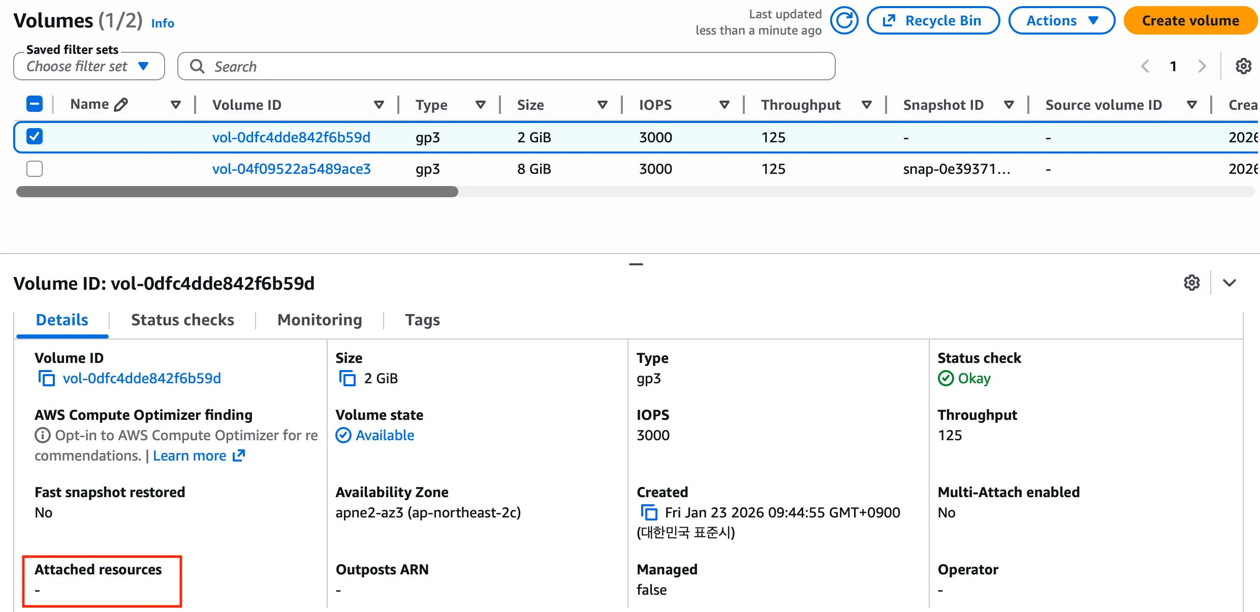 📌 옵션으로 “Delete on Termination” 기능을 해제하면 삭제되지 않는다.