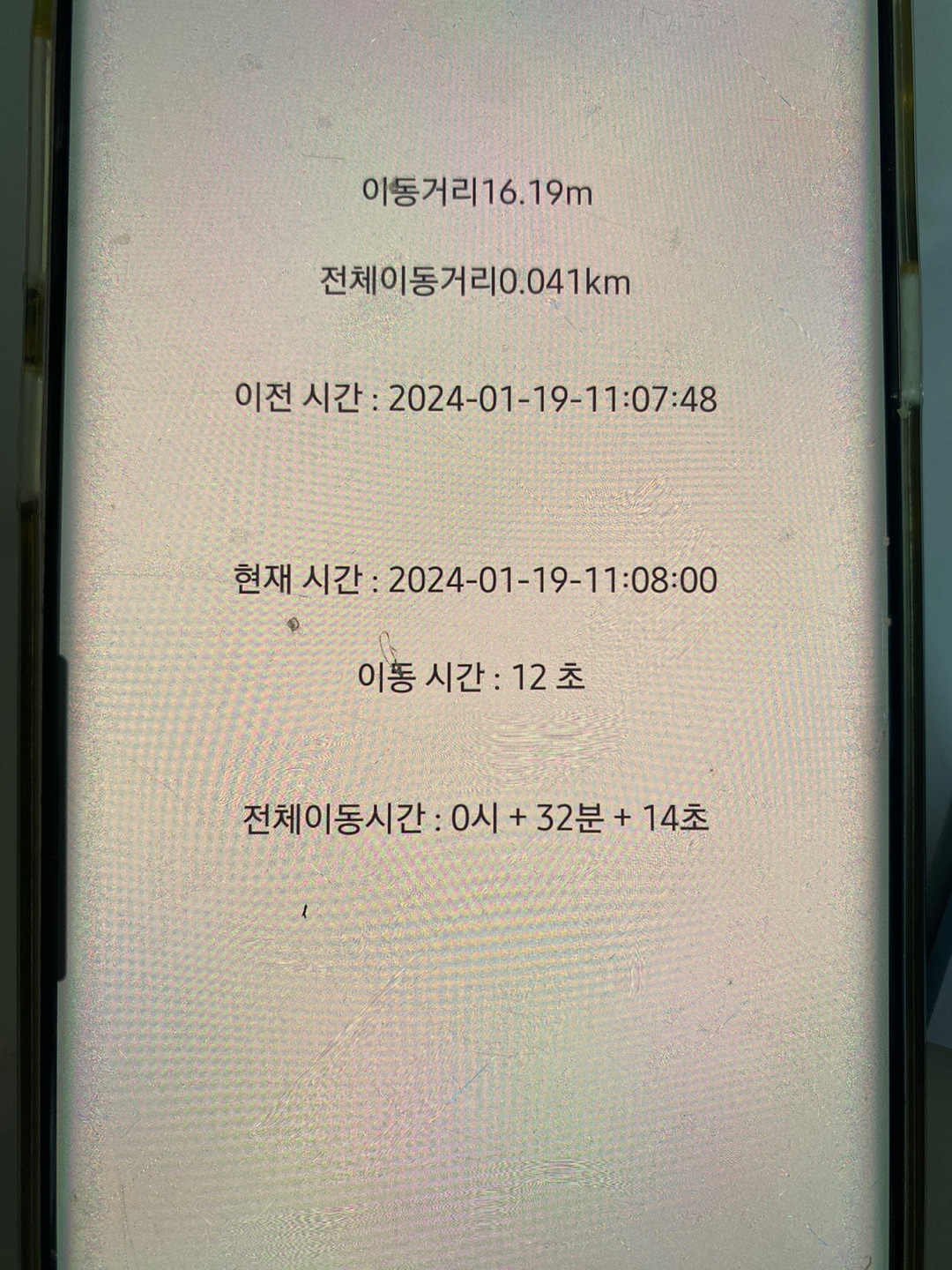 실제 기기와 연결해서 이동해보며 이동거리와 이동 시간을 측정해보았다.