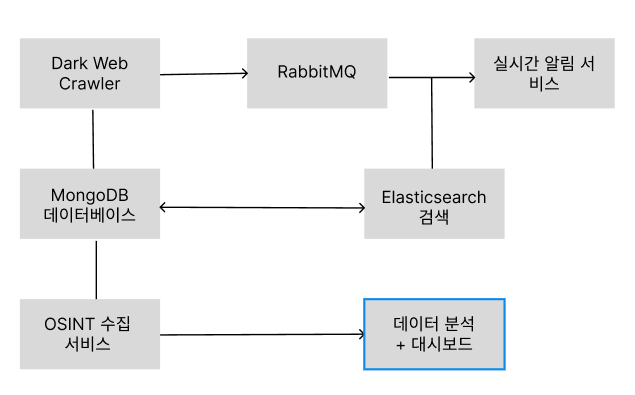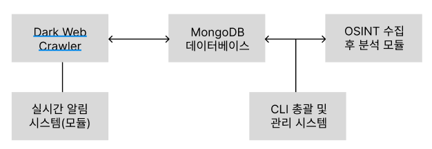 - Tor 네트워크 기반으로 다크웹 데이터를 수집하며, 수집된 데이터를 MongoDB에 저장